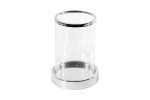 Metalowy świecznik dekoracyjny ze szklanym kloszem , kolor SREBRNY. Skład: metal+szkło