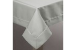 Obrus z delikatną srebrną lamówką,zapakowany w eleganckie pudełko , szerokość: 145 cm, długość: 350 cm, kolor SREBRNY. Gramatura: 190 GSM. Skład: 100%poliester