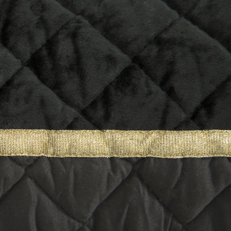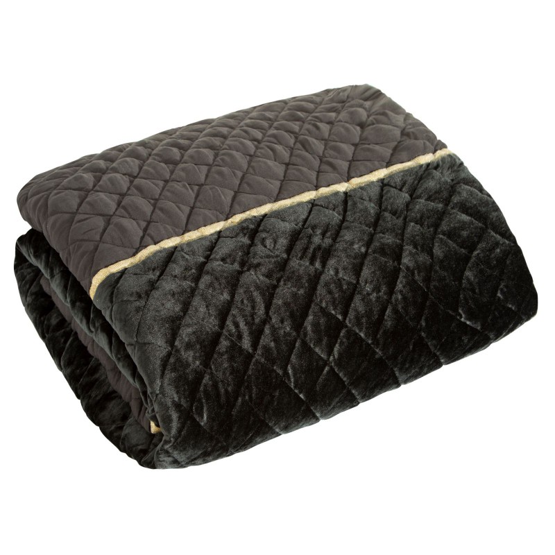 Elegancka, mięsista narzuta z wysokiej jakości welwetu o charakterystycznym połysku. Powierchnia pikowana tradycyjną metodą. Brzegi wykończone lśniącą lamówką. , szerokość: 220 cm, długość: 240 cm, kolor CZARNY. Gramatura: 220+70+180 GSM. Skład: 100% poliester