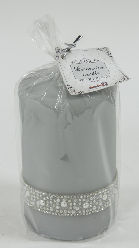 Pl Szary Perła Świeca Crystal Walec Średni Fi8