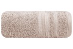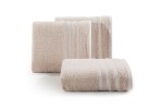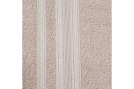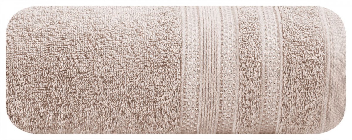 Minimalistyczny ręcznik kąpielowy z chłonnej bawełny frotte. Bordiura zdobiona cienkimi pasami z dodatkiem lśniącej nici. Ręcznik odpornym na częste pranie. , szerokość: 70 cm, długość: 140 cm, kolor JASNY RÓŻOWY. Gramatura: 500 GSM. Skład: 100% bawełna, 90% bawełna 10% nić metaliczna