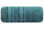 Ręcznik bambusowy z ozdobną bordiurą w pasy , szerokość: 50 cm, długość: 90 cm, kolor NIEBIESKI. Gramatura: 500 GSM. Skład: 100% wiskoza z włókna bambusowego, 100% bawełna