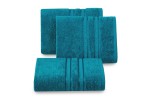 Ręcznik bambusowy z ozdobną bordiurą w pasy , szerokość: 70 cm, długość: 140 cm, kolor TURKUSOWY. Gramatura: 500 GSM. Skład: 100% wiskoza z włókna bambusowego, 100% bawełna