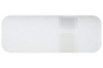 Puszysty ręcznik z ozdobną bordiurą przetykaną błyszczącą nicią , szerokość: 50 cm, długość: 90 cm, kolor BIAŁY. Gramatura: 500 GSM. Skład: 100% bawełna, 75% nić metaliczna 25% poliester