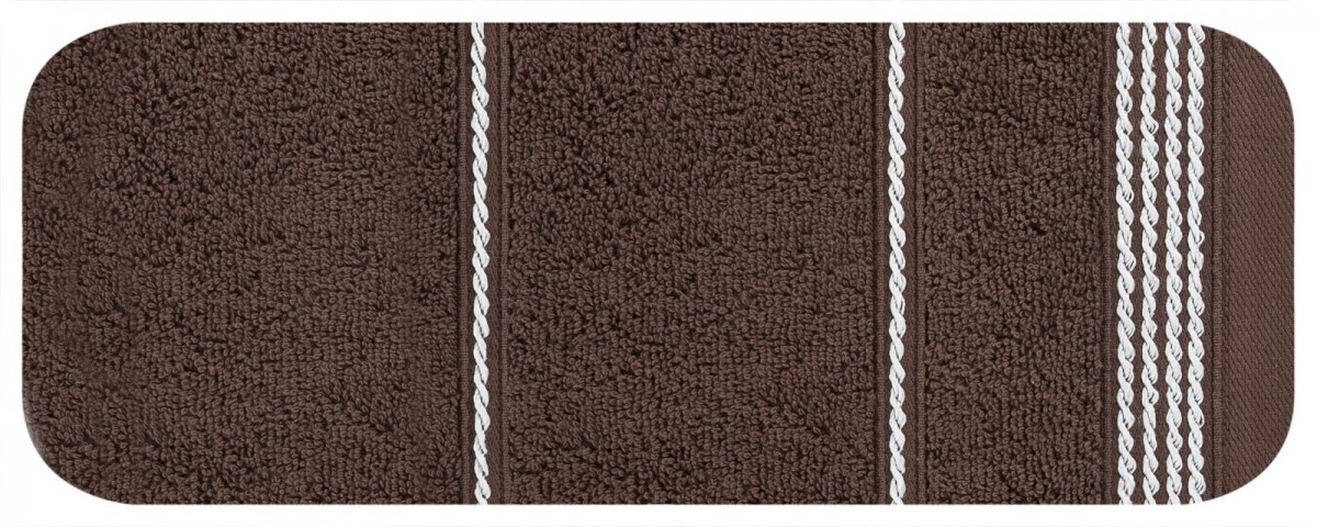 Miękki, klasyczny ręcznik kąpielowy z chłonnej tkaniny bawełnianej frotte zdobiony subtelną, elegancką bordiurą. Jednokolorowy ręcznik nie farbuje. , szerokość: 70 cm, długość: 140 cm, kolor BRĄZOWY. Gramatura: 500 GSM. Skład: 100% bawełna, 60% bawełna 40% poliester