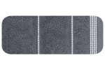 Miękki, klasyczny ręcznik kąpielowy z chłonnej tkaniny bawełnianej frotte zdobiony subtelną, elegancką bordiurą. Jednokolorowy ręcznik nie farbuje. , szerokość: 70 cm, długość: 140 cm, kolor GRAFITOWY. Gramatura: 500 GSM. Skład: 100% bawełna, 60% bawełna 40% poliester