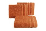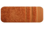 Jednobarwny ręcznik z miękkiej i chłonnej tkaniny bawełnianej o splocie frotte zdobiony kolorową bordiurą w stylu fastrygi. Łatwy w praniu, nie farbuje. , szerokość: 70 cm, długość: 140 cm, kolor POMARAŃCZOWY. Gramatura: 500 GSM. Skład: 100% bawełna