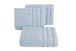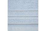 Jednobarwny ręcznik z miękkiej i chłonnej tkaniny bawełnianej o splocie frotte zdobiony kolorową bordiurą w stylu fastrygi. Łatwy w praniu, nie farbuje. , szerokość: 50 cm, długość: 90 cm, kolor BŁĘKITNY. Gramatura: 500 GSM. Skład: 100% bawełna