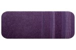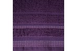 Jednobarwny ręcznik z miękkiej i chłonnej tkaniny bawełnianej o splocie frotte zdobiony kolorową bordiurą w stylu fastrygi. Łatwy w praniu, nie farbuje. , szerokość: 50 cm, długość: 90 cm, kolor ŚLIWKOWY. Gramatura: 500 GSM. Skład: 100% bawełna
