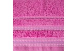 Jednobarwny ręcznik z miękkiej i chłonnej tkaniny bawełnianej o splocie frotte zdobiony kolorową bordiurą w stylu fastrygi. Łatwy w praniu, nie farbuje. , szerokość: 70 cm, długość: 140 cm, kolor AMARANTOWY. Gramatura: 500 GSM. Skład: 100% bawełna