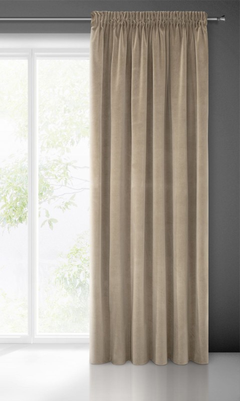Zasłona welwetowa jednokolorowa , szerokość: 140 cm, długość: 270 cm, kolor JASNY BRĄZOWY. Gramatura: 330 GSM. Skład: 100% poliester